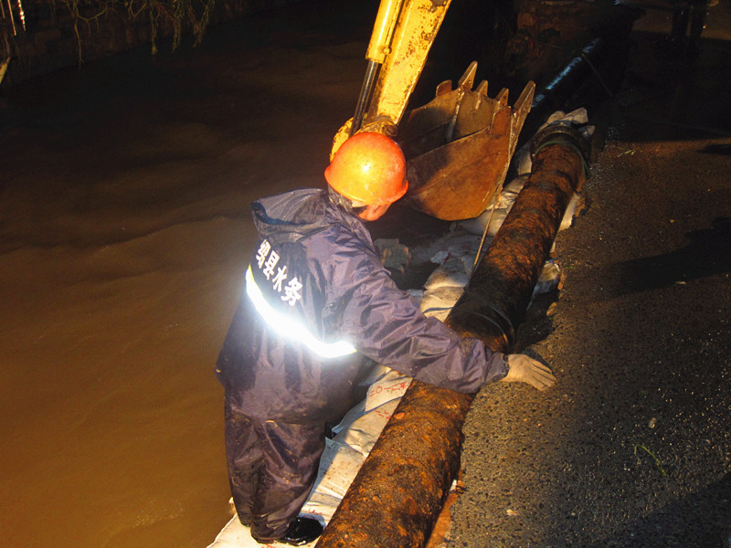 災情就是命令!集團接到縣防指命令后,立即啟動大口徑管道應急搶修預案。根據受災情況,集團迅速派出由20多名人員組成的專業(yè)搶修隊伍,隨帶各種專業(yè)搶修工具,冒著大雨趕赴受災點,并于下午16時進入現(xiàn)場開始搶修。經過8個小時的持續(xù)作戰(zhàn),搶修隊克服重重困難,終于搶通供水管道。然而,凌晨3點多,敖紅了雙眼的搶修人員卻再次接到任務,立即趕赴王壇鎮(zhèn)幫助王壇鎮(zhèn)水廠解決因停電造成管網無法輸水的問題,于凌晨5點恢復供水。