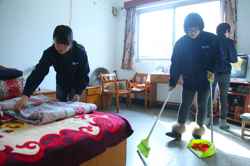 志愿者為夕陽紅敬老院老人打掃衛生
