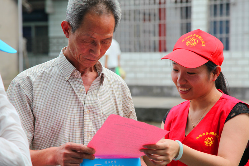 6 月30 日上午,集團公司團委、婦聯(lián)聯(lián)合開展“助力五水共治、共創(chuàng)美好家園”宣傳活動,水務志愿者們來到大坂湖直江沿岸的華舍街道華舍村、蜀阜村、興華社區(qū)等村(居),向岸邊居民宣傳“五水共治”,勸導河邊居民愛護水環(huán)境,不要往河里倒污水、扔垃圾等。