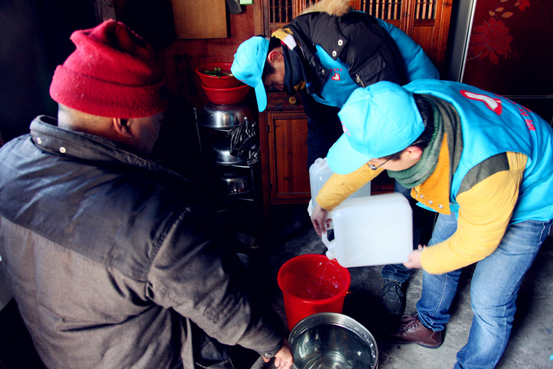 受這波世紀寒潮及雨雪冰凍天氣影響,氣溫低至零下8-10度,使用戶家里的一些自來水水管被冰凍,山區自來水管比平原地帶更容易受凍。1月25日上午,柯橋水務集團青年志愿者們冒著寒冷,上門為蘭亭、漓渚、楊汛橋、夏履等鎮停水的27個山區自然村一些行動不便的孤寡老人送去了基本的生活飲用水,解決他們的燃眉之急。