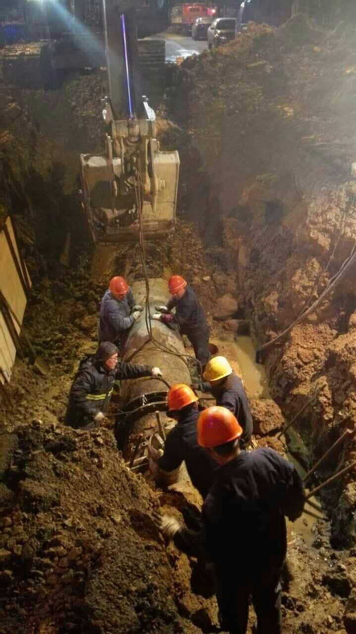 1月26日下午3點(diǎn)多,供水公司柯南分公司忽然發(fā)現(xiàn)位于蘭亭鎮(zhèn)婁宮集鎮(zhèn)的直徑800管爆管,分公司一方面安排專人進(jìn)行交通疏導(dǎo),另一方面抓緊組織人員進(jìn)行搶修。搶修工程從當(dāng)天下午4點(diǎn)半開始,連續(xù)作戰(zhàn),一直到27日凌晨4點(diǎn)左右結(jié)束,恢復(fù)通水。由于那幾天一到后半夜,室外溫度就降到零下數(shù)攝氏度,給搶修又帶來(lái)難度,婁華慶等現(xiàn)場(chǎng)搶修人員,就分批輪流不間斷作業(yè),只為早日恢復(fù)供水。