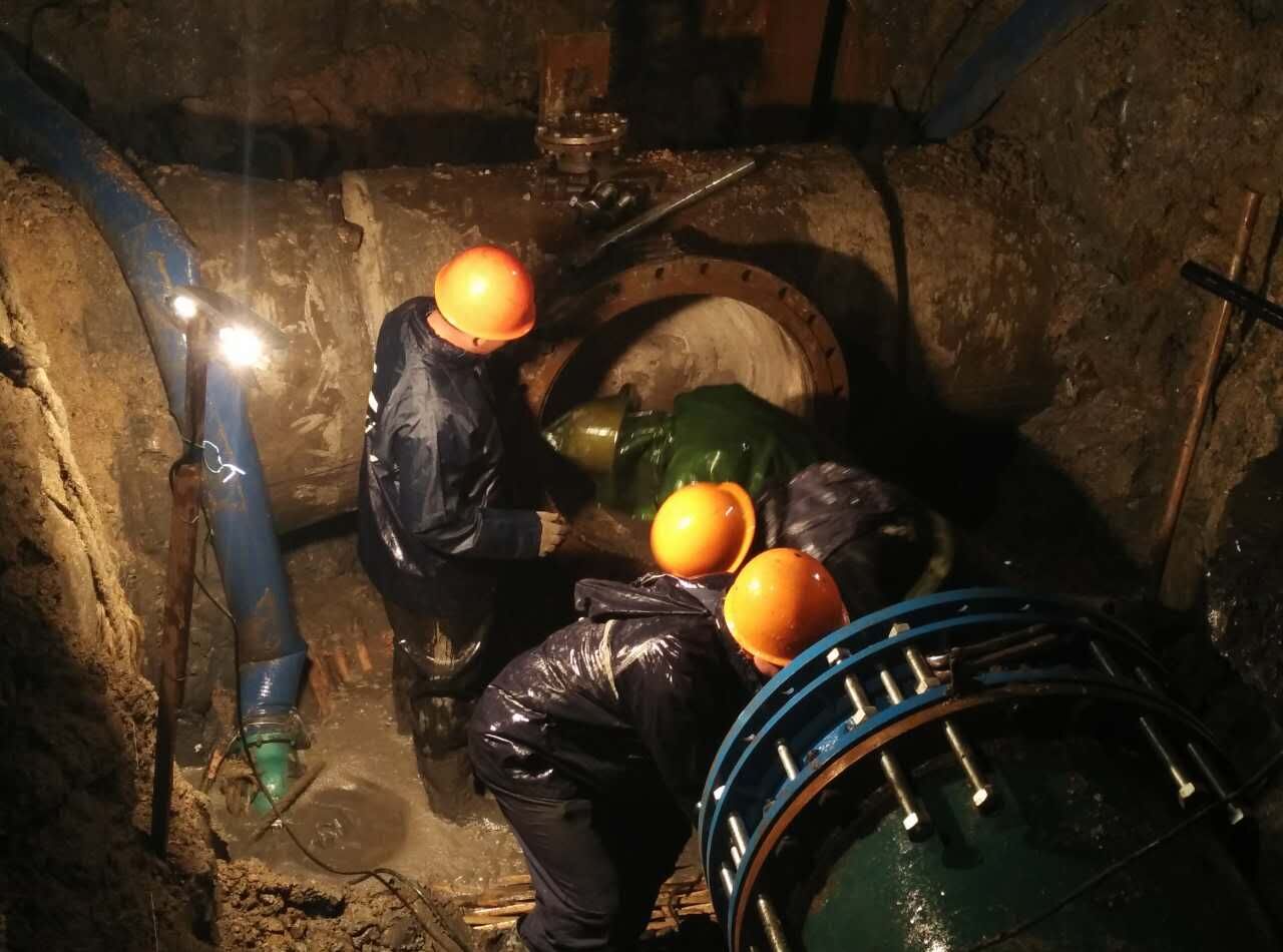 正逢臺風暴雨肆虐,安裝人員搶抓進度,冒雨突擊,比預計時間提早2小時恢復了通水。期間,無一投訴件,通水后水壓穩定、水質正常。