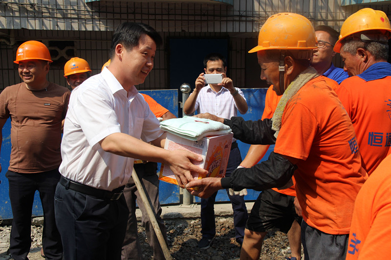 在工程現(xiàn)場(chǎng),馬焉軍向施工人員送上了飲料、毛巾等防暑降溫物品,詳細(xì)了解了工程進(jìn)展和高溫防護(hù)措施,詢問了施工人員的作息時(shí)間,對(duì)大家高溫天氣堅(jiān)守崗位、辛苦勞動(dòng)的精神表示高度贊揚(yáng),并反復(fù)叮囑現(xiàn)場(chǎng)人員注意身體、勞逸結(jié)合、防暑降溫。這次慰問活動(dòng)讓工程一線的作業(yè)人員實(shí)實(shí)在在地感受到了上級(jí)領(lǐng)導(dǎo)的關(guān)愛之情。
