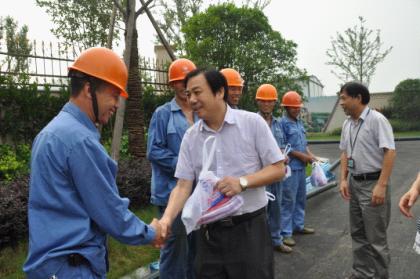 7月18日上午,集團公司黨委副書記高小林、副總經(jīng)理王嘉賢在供水公司領(lǐng)導的陪同下到城區(qū)藍天玫瑰園小區(qū)工地和福全富強村新橋橋管改造現(xiàn)場慰問供水一線職工,送上防暑慰問品,并叮囑大家在高溫酷暑下作業(yè)要注意做好防暑措施。