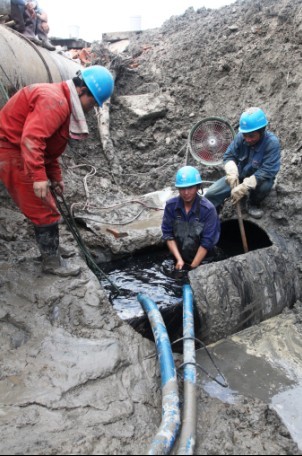 為讓道“清水工程”翻水站建設,公司對錢二—柯海1號DN1200管進行改道遷建。 該污水管道是全縣三大排污管線之一,承接了錢清、楊汛橋、夏履、湖塘、柯巖的工業污水和生活污水排放。經過前期充分準備,整項遷建工程從5月25日開始,至6月18日進行兜口,通過搶修人員的持續作戰,兜口工作提前完成,遷建工程比計劃提前15個小時完工。