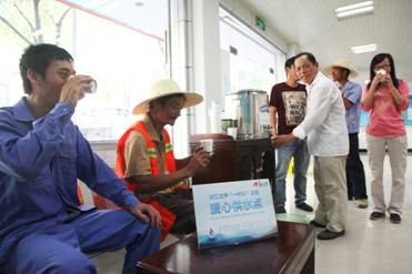 為進一步樹立公司良好的社會服務(wù)形象,紹興縣供水有限公司積極響應(yīng)浙江之聲廣播電臺的倡議,從8月6日起,在柯橋城區(qū)、福全鎮(zhèn)、安昌鎮(zhèn)、錢清鎮(zhèn)等16個供水營業(yè)大廳開展“一杯水”大型公益活動,為戶外高溫工作者免費提供飲用水和短暫休憩場所。
