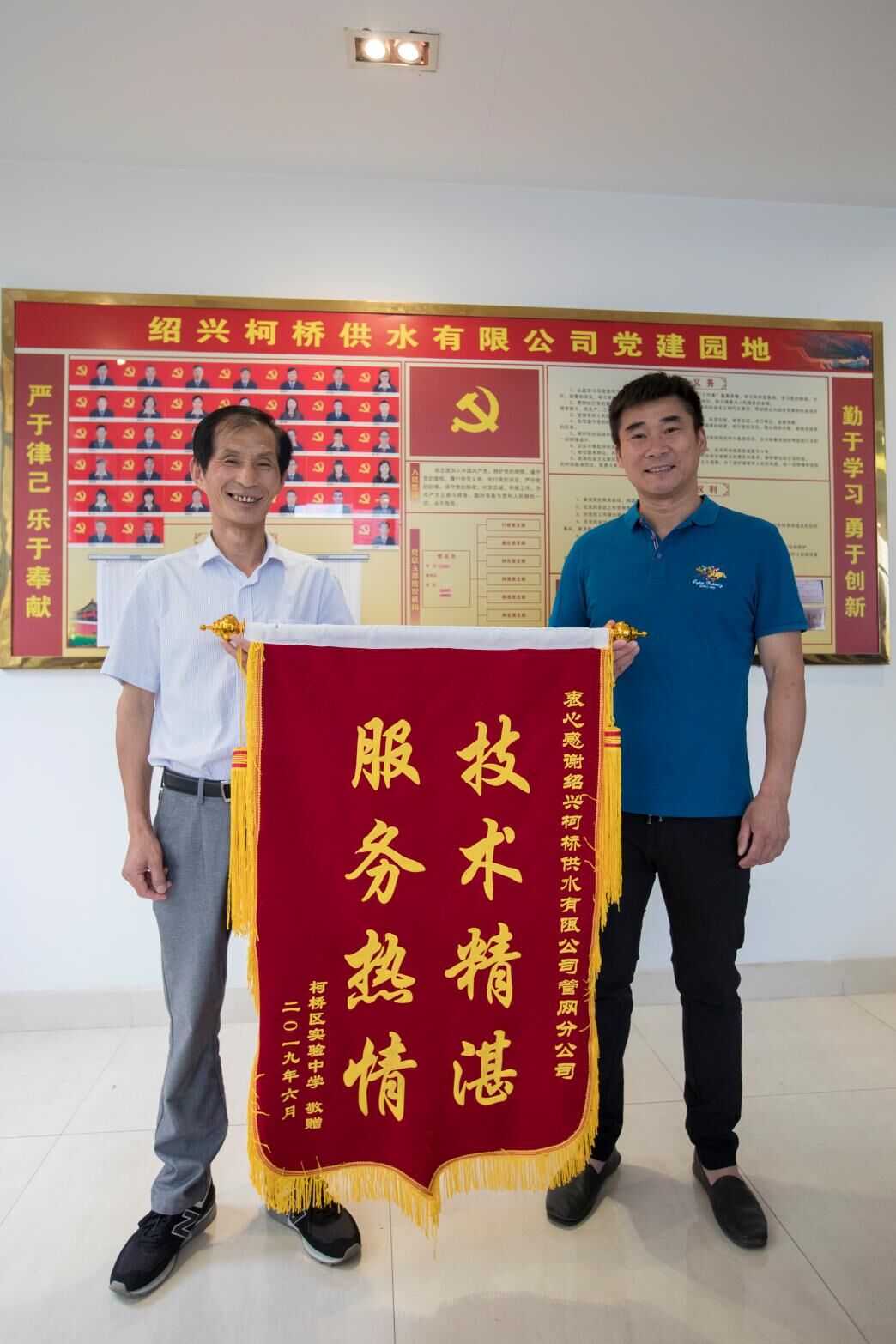 為助力中考,管網(wǎng)分公司立即派出技術(shù)精湛的檢漏班組長上門服務(wù)。經(jīng)過一系列檢查,于當晚查出校內(nèi)供水管道漏點3個,切實解決了柯橋?qū)嶒炛袑W(xué)的用水問題。熱情服務(wù)的態(tài)度和精湛的檢漏技術(shù)得到了實驗中學(xué)的肯定和點贊。為此,6月12日,該校總務(wù)科長李強代表柯橋?qū)嶒炛袑W(xué)向管網(wǎng)分公司送上錦旗,以表感謝。